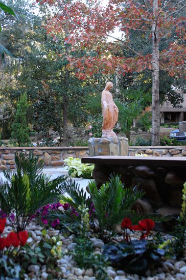 Our particular parish mission is to build together a community of compassion in Christ. Over the years, as the city of Gainesville has grown, Holy Faith now is near the epicenter of Gainesville, in the heart of Gainesville. The parishioners of Holy Faith seek to have the Heart of Jesus for Gainesville, and beyond. This explains the presence of the statue of the Sacred Heart in front of the church building, his arms extended in welcome.